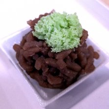 草萌え 道明寺を芯にして濃厚な黒糖餡による太いそぼろで覆い、その上に細かい練りじょうよのそぼろを置いた美しくて美味しい お菓子です。濃厚な黒糖餡の味わいが素敵な美味しいお菓子です。