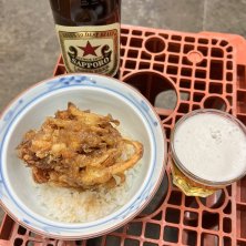 青柳の大柱を贅沢にたくさん使ったかき揚げ✨ それをかき揚げ丼に✨✨ ビールに合うかき揚げ丼、初めて食べた😊