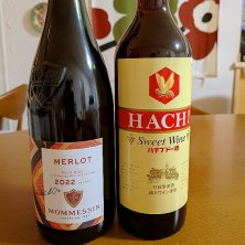 モメサンメルロー赤 ハチブドー酒 メルローはチョコレートやブルーベリーを連想されるアロマな香りで飲みやすい 試飲して美味しかったので買いました ハチブドー酒はハチミツ、漢方薬などが入ったワインで甘みが強いです