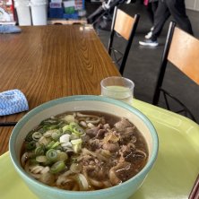 いつも通り市場の徘徊を経て 本日は富士弁さんのロースカツカレー 豚肉や玉ねぎがたっぷり 濃厚でスパイシーなカレーていいよなあ 富士弁特製のもつ煮をトッピングする猛者もいるようで今度試してみよ‼︎ 朝ご飯にはちょっと重め😅