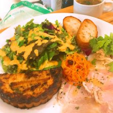 モダンフレンチとクラフトビール🍺のお店、キクヤルネへ。ランチは初訪問です。 もともとキクヤさんっていう文房具屋さんでしたが、店名を継いでそのままフレンチのお店に。ランチ営業をいつのまにかスタートしたので、来てみました😊 今回頼んだのは、プレートランチ。30cmはあろうかという大きな丸皿で登場。夏野菜のキッシュが美味😆💕パイ生地がしっとりで私好み😍スープ、バゲット、自家製ハム、鶏胸肉のマリネ、サラダにキャロットラペはお代わりしたいくらい美味しかった❗️また絶対行く‼️夜も行くー‼️