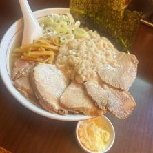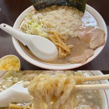 コレコレまた来ました好みです。 「チャーシュー麺」トッピング 身ダブル、ねぎ。 手打ち自家製麺ねじり太麺中盛でも良かった。山形の酒田ケンちゃんラーメン本場いつか行きます。