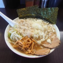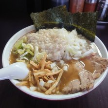 ラーメン身入り玉ねぎトッピング 身入りとは、背脂の固まりを入れること