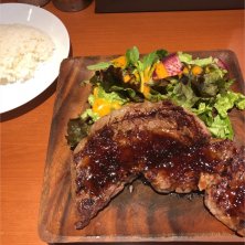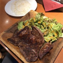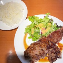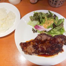 ステーキ 1,000円 魚気分でしたが方向転換 かみ切れないところがあったり肉は値段相応ですが、下処理がいいのか味付けは満足できます ごはんの大盛もサービスです 贅沢を言えば、スープが付けば文句なしですね