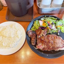 ステーキランチS(180g)1,000円 朝から牛肉食べたくて、こちらに向かったらガン爺さんに行列なし😮昨晩カレーじゃなかったら良かったのに😓 こちら部位は分かりませんが、柔らかく肉感たっぷりな美味しいステーキでした😋