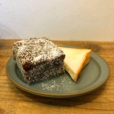 「ラミントン」というオーストラリアのお菓子です🧁 スポンジケーキの外側にチョコレートソースを塗って、乾燥ココナッツをまぶしたもの。 グルテンフリーのベイカリーで買いました♡ 以前は間にクリームが入ってなかったような…?と思ってオーナーさんに聞いたら、「豆乳クリームが手に入ったので入れました!以前よりちょっとお得です😊」とのこと♩ オーナーさんも言ってたけど、すごく美味しいのになぜか日本で流行らない。笑 オーストラリアに行ったことないのだけど、このお菓子は大好きです🥰💕