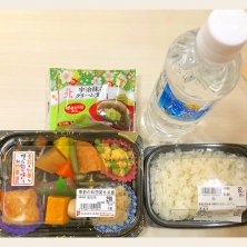 私:昼御飯でした。 歩いてウロウロしたからもうここで惣菜買って食べることにした。