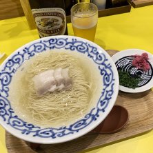 透き通るスープに極細麺の豚そば🐷 スープ、いくらでも飲めます。笑 ふだんラーメン食べないわたしでも ペロリと軽くいけます^_^