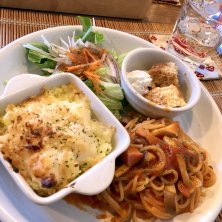 【よくばりプレート】 週末カフェ巡り〜♪ (๑˃̵ᴗ˂̵) 今日のカフェは、有形文化財の建物をリノベしたカフェ! #ドリア #パスタ #カフェ #カフェめし #カフェ巡り #上庄かふぇ #登録有形文化財 #platelunch #ueshocafe #cafe