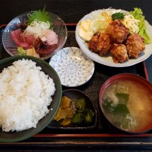 今日のランチはAセットの唐揚げとまぐろネギ!