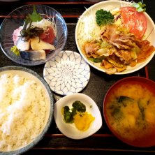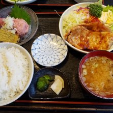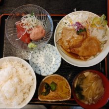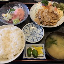 今日のランチは此方にて Aセットのしょうが焼きとねぎまぐろ!
