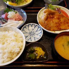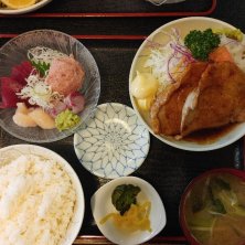 今日のランチは此方にて Aセットの豚焼肉とネギまぐろ!