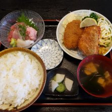 今日のランチは此方にて Aセット(生姜焼きとネギまぐろ)1,000円!