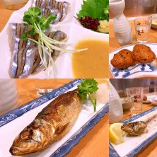 鹿児島、天文館の晩御飯。 「おはし」さんへ。御当地名物「きびなご刺身」「さつま揚げ」当店推しの「イワシ」を塩焼きで。 ぜーんぶウマーイ。忙しい中、大将とニイちゃんの息がピッタリで、気分良く頂きました。 鹿児島といえば焼酎。前割ですよねー。