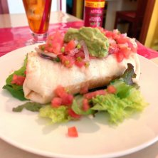 また来た 中南米ラテン料理のお店でランチ(^.^) お店の入り口はもちろん、テーブルごとにアルコール消毒が完備❗️安心です(^^) Aランチ ブリトー サラダ ウーロン茶付き ¥946 中にぎっしりピラフが入ってボリュームたっぷり(^^) 辛いデスソースを1滴垂らしただけで、、、ウマーーさ倍増〜(^o^) 2020.08.03