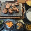 今日のお昼 ・赤辛定食 鉄板に卵があって、その上の大判からあげに旨辛タレがかかってました🎵 玉子でマイルドかな?って思ってたら結構な辛さで、汗だくで食べました😌💦💦 でも美味しかった~😋💓 ここの大判からあげ好き💕