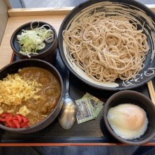 神奈川・東京蕎麦食遠征2日目の朝蕎麦はゆで太郎大森駅前店で朝セットのA定食をもりそばで。サービス券で温玉子付けて。ここはカレー丼ですね(笑)個人的には朝定食でカレーライスでなかったのは初めてです。