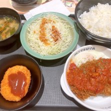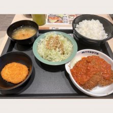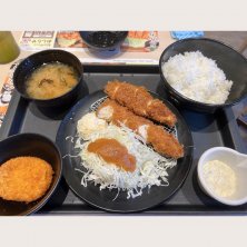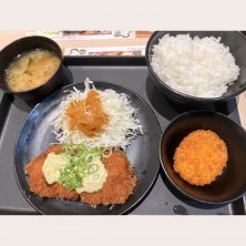こんばんは☔️ 生命保険のお姉さん (僕よりお姉さん笑)と 更新終わって#松のや お腹空いたので 南幸の松のやさんで 国産黒毛和牛入りメンチかつ定食 いただきました♪ クーポンで惣菜コロッケをプラス➕