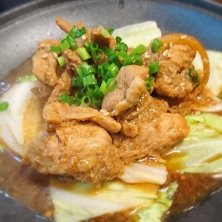 「豚と鶏の素晴らしい組合せ」 今日は郡上八幡城のライトアップイベントを見るために郡上八幡に行きました。 夕飯は郡上八幡のカンミナで「郡上ラーメン」と「鶏ちゃん」のセットを頂きました。 豚と鶏の組み合わせですが、郡上味噌がしっかり繋いでくれて、とても美味しく頂くことができました。 今回は店員から郡上豚骨ラーメンの説明があって、さらに美味しく頂くことができました。