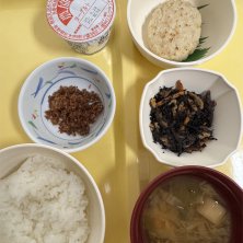 米飯 味噌汁 納豆 ぜんまい炒め ピリピリごぼう ヨーグルト