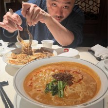 絶対入ろうとするビリヤニ屋の店主👴邪魔(笑) 写真は〆の担々麺 前菜盛り合わせ 揚げ春巻き 帆立のチリソース 黒酢酢豚 鶏肉のカシューナッツ炒め 五目おこげ サンラータンスープ ワンタンスープ 五目焼きそば 他にも何か食べたかな〜? もう思い出せない… 麻婆豆腐も食べたかったけどもう入らなくて断念しました。 腹ぱん過ぎて今朝は朝食が食べれません🤣
