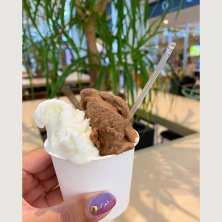 【ミルミル本舗のジェラート】 #ピーナッツ #あずきなこ 石垣空港でフライト待ちのスイーツ〜♪ 琉球おしるこ風のあずきなこと、空港限定のピーナッツをハーフ&ハーフで! 地味な色味の組み合わせになってもーた! #ジェラート #石垣島ミルミル本舗 #ミルミル本舗 #石垣空港 #南ぬ島石垣空港 #石垣出張 #石垣島 #ついで #gelato #mirumiruhonpo #ishigaki