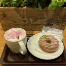 🌸桜咲くよラテ 🌸桜抹茶ドーナツ 桜の商品が出始める時期ですね〜😌 テンション上がります。 …しかし、花粉も飛ぶ時期です🤧