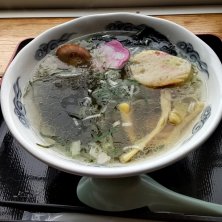 羅臼峠 夜間規制解除待ちの間に朝ラー 羅臼昆布羅~メン ¥850 昆布+鮭節 出汁の優しい味 麺にも昆布が練り込んであるらしい。切り昆布 とろろ昆布 ベビー保立 etc 好きだなぁこういうラーメン