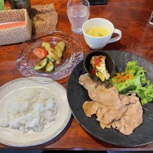 昨日の昼ごはん かふぇ 木音 の 週替わりランチで しょうが焼きセット 全部 美味しいけど キッシュが美味しかったわ♡