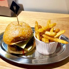 グラスフェドの牛肉パティー、トマト、レタス、チーズ、マスタード、ハラペーニョ、スリラチャマヨのバーガー Denise burger 🍔 今日は気温39度💦 バーガー🍔もスパイシーな仕様で
