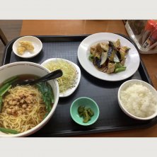 日替わり定食 豚とナスの炒め物と台湾ラーメン