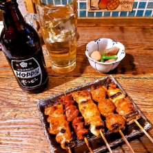 焼鳥おまかせ5本、筑前煮&ホッピー
