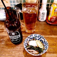 キノコと春菊のおひたし とろろ掛け&ホッピー