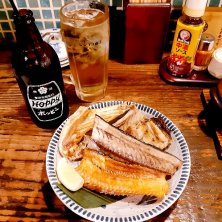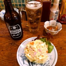 ポテトサラダ、秋刀魚の梅煮&ホッピー