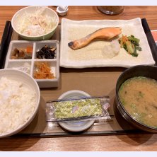 千歳で朝食 焼き鮭定食 ザ朝ごはん。 バイキングと違って 定食だとゆっくり食べれる。