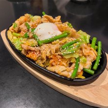 ご近所で幼なじみたちと居酒屋飲み。昔からこのメンバーでは頼んじゃう豚キムチ。このお店は温玉が乗ってた。