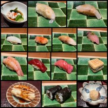 息子のママ友とまたまたこちらに。 先付けには駿河湾の桜エビ、綺麗な色! イサキ、スミイカ、大原のヒラマサ、甘エビ、タイラ貝、塩釜の中トロ、鹿児島のアジ、巻物二種は梅キュウと干瓢、漬けマグロ、いくら、穴子、卵焼き、お吸い物はもずく、最後は黒胡麻最中アイス! 今日も大満足のランチでした!やはり丁寧な仕事をされているこちらのお店には感謝です!