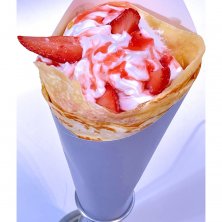 神奈川県川崎市川崎区 アトレ川崎の4階に有るカフェとバーの店、COFFEE&WINE STAND TOROCCOのスイーツ、ストロベリークリームチーズ。 全粒粉を使用した香ばしい粉、北海道根釧地区の乳脂肪分4.0の成分無調整の牛乳、香り高くてコクの有るバターを使用し、水を全く使わずに作られた生地の中にエスプーマて仕上げた北海道産産生クリームとクリームチーズを入れ、仕上げにフレッシュな苺を乗せて苺ソースをかけたクレープです。 クリームチーズ、生クリームと苺のバランスが良くて美味しかったです。