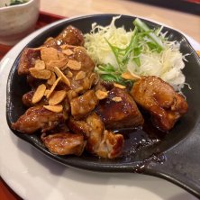 ◆とんテキ定食1,065円 柔らかな豚肉のサイコロステーキ 四日市のトンテキと比べると違うとんテキですが甘じょっぱいソースにフライドガーリックが美味しい。ソースをもう少し欲しい。