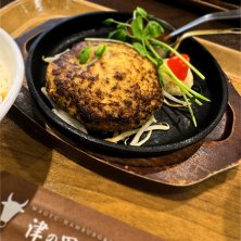休日の妻と合流して「津の田ミート」でランチ てづくりハンバーグランチ(¥990+税) あつあつで肉汁たっぷりのハンバーグ、美味かった 😋