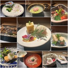 昨夜のごはん♡ ならまちのお気に入りのお店へ。 奈良の風景や、行事をイメージしたお料理。 一品ずつがとても綺麗でいつも感激しちゃいます♡ 始めは奈良の又兵衛桜をモチーフにした先付けから。 お椀は新ジャガの桜、新玉ねぎ新キャベツ。 彩りが綺麗なお造り。 真ん中picのテーマは談山神社のけまり祭。 毛蟹の手鞠寿司を蹴鞠に見立て、湯葉のチップを重ねたものは十三重塔をイメージ。お見事です! 他にも炭火焼きの鰻は蛇行剣だったり… 甘味の桜のアイスには塩漬け桜葉のフライが♡ 甘塩っぱが堪らん♡