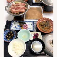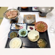 昨夜の晩御飯 麻婆春雨 陶板焼き 豚すき焼き 茄子と挽肉の炒め物 あさりとわかめの和物 お魚 ご飯 お味噌汁 昨日は完食できました。 晩御飯が遅くなり、私たちのお膳だけがポツンと置いてありました…😅💦