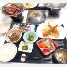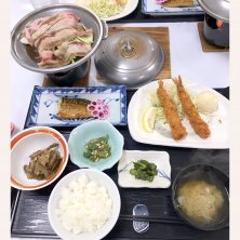 本日の晩御飯 ジンギスカン🐏 お肉柔らかくて美味しかった😋💕 焼き鮭 エビイカチリ🦐🦑 お刺身 チキンカツ ご飯 味噌汁 お腹空いてたから、いっぱい食べました。 御馳走様でした〜