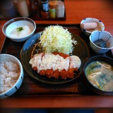 今日はかなり遅い昼御飯。チーズかつ定食。