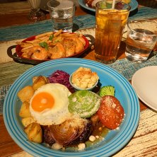 合格お祝いディナー㊗️🍽️ ・アボカドハンバーグロコモコ ・フライドポテト&ガーリックシュリンプ ・トロピカルティー 大阪にいた頃、フラを習っていた娘は、コナズ珈琲のフラショーに出ていました🌺それもあって合格したらコナズでパンケーキを食べたい😍とずっと言っていたので、希望通り、コナズに行って来ました🌿 ハワイ気分を味わえて楽しかったです❣️