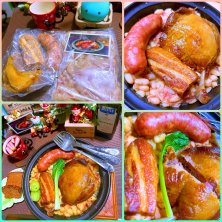 そしてクリプレが届く🐈⬛🎁のを待つ間、この日のために冷凍保存してたカスレを調理。 具材を湯煎した後、皿へ豆を敷いて、上へ肉類を乗せ、鴨の脂をお好み量添える…そしてオーブンで仕上げ焼き。 う、うっま~❣️ やや塩味が強いので、ワイン🍷で流し込むと程よいです🎶 簡単で満足感あって、最高(*`ω´)b 来年も催事出店してくれたら買いたいなぁ。