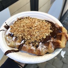 ベルギーごはん♡ EUの本部があったりするベルギーの首都ブリュッセルに行ってきました♡ おやつはベルギーワッフル♡ こちらではブリュッセルワッフルと、リエージュワッフルの2種類があります。 いただいたのはブリュッセルワッフル。 長方形で、サクサクしてて生地は甘さ控えめ。 塩キャラメルバターソースにキャラメルアイスとホイップクリーム。とっても美味しかった♡ ちなみにリエージュワッフルは日本にあるマネケンみたいなタイプです。