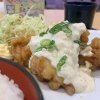 4/17 昼ごはん カツカレー きつねうどん 琵琶湖畔の道の駅の桜はもう葉桜で雨が降っていたので靴の裏に花びらがべっとり.カレーも食べたいしうどんもと言うんでシェアして、この後ファミマでアイスコーヒーを。