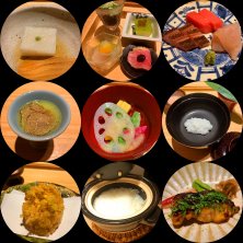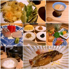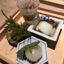 前 菜 八 寸 旬のお造り 三点盛(本鮪・真鯵・鯛) ずわい蟹と百合根の茶碗蒸し 和サラダ 汁 椀 煮 花 季節のかき揚げ 鰆の幽庵焼き 土鍋ごはん(こしいぶき) 鶏しぐれ煮 ちりめん山椒 海苔佃煮 大根おろし 出汁巻き玉子 香の物 お味噌汁