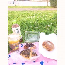 今日は絶好のピクニック日和⸜(*ˊᵕˋ* )⸝ 最近ハマってるファミマ限定のフルーツティー。 グレープフルーツ味は初めてだけどやっぱり美味しい✨ 旦那さんセレクト塩あんぱん。ごまの香りと上の岩塩加減が絶妙! ミル友さんが食べてて気になった大納言デニッシュついに食べられた!これもクリチの塩気が美味😋💕 大森限定 温州みかんと紅茶のリュスティック みかんのパンって珍しいー。中にたっぷり練り込まれてて杏のよう。茶葉が生地に練り込まれてて香り高い。